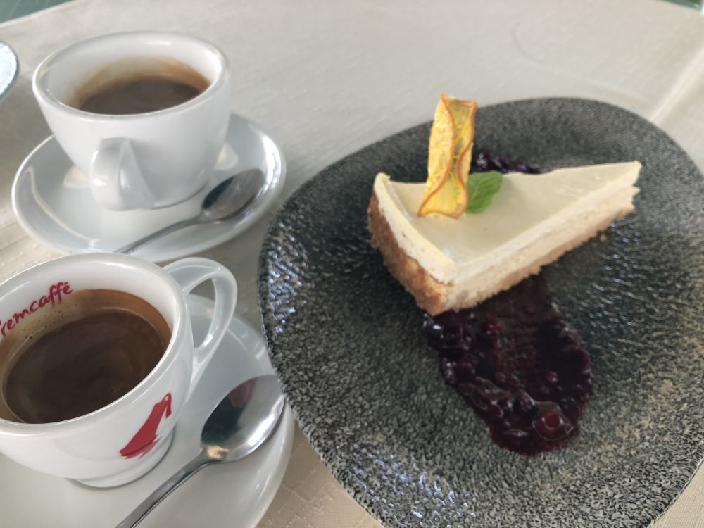 这是我的烤小牛排,看着这油亮的色泽,就知道老先生的手艺棒棒的,里面很嫩,用当地上好的橄榄油轻轻的烤出来的。