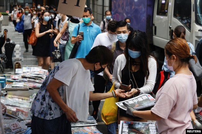 创刊26年来坚定支持民主的香港《苹果日报》,星期四(6月24日)最后一天的100万份报纸被市民很快购买一空。同时,香港网络活跃人士将该报的文章备份到受不到政府新闻审查的区块链平台上。