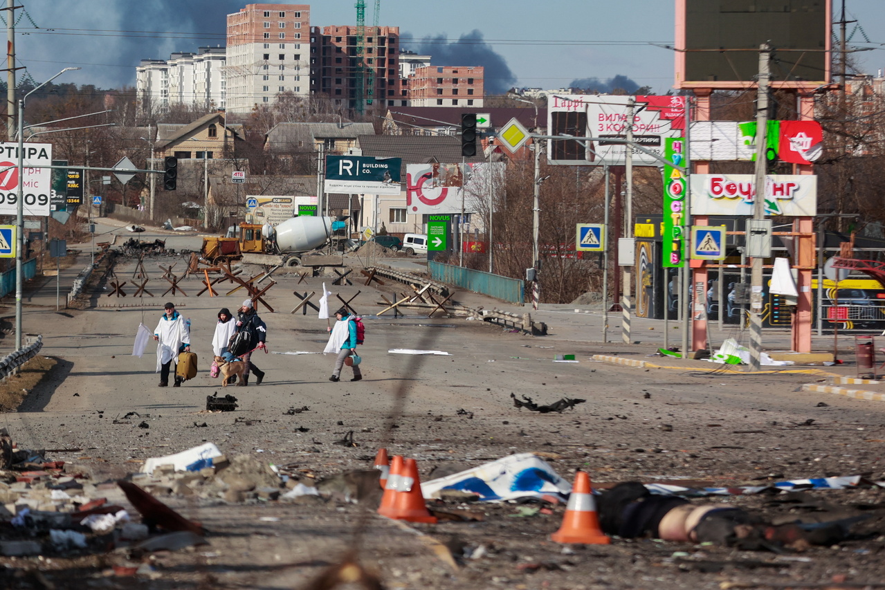 「在乌克兰发生的绝对是犯罪,而俄国就是这场战争的侵略者。造成这场入侵惨剧的最大主谋者,就是那个男人:弗拉基米尔.普丁。」图为遭俄军轰炸后的伊尔平(基辅外围城市)现况。 图/路透社