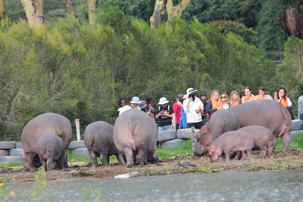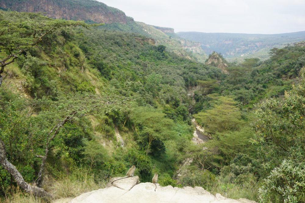我们第二天的行程是地狱之门国家公园(Hell's Gate National Park)。这个公园是唯一一个可以在里面边骑车边欣赏野生动物的公园。估计没啥像狮子豹子之类凶猛的动物。公园景色宜人,非常不错。当然跟之后的很多公园相比多了许多悠闲,但缺少了惊心动魄的场面。到了公园的另一尽头,我们徒步去了景色优美的大裂谷 (Great Rift Valley), 据说迪斯尼的动画片《Lion King》中穆法萨和辛巴 (Mufasa 和Simba)接受众动物膜拜的那块骄傲石(Pride Rock)就是受到这个大裂谷中悬崖峭壁的启发。当天我们晚上坐船游览了奈瓦沙(Naivasha)湖,在那里看到了各种鸟类以及臭熏熏的河马。
