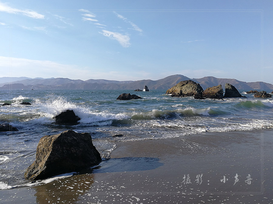 9、我们住的旅馆离海边很近,走到白沙滩也就10分钟左右,加州的海岸线很长,有无数大大小小的海滩,有的温柔平和,有的汹涌澎湃……,很喜爱大海,经常到海边漫步,好不容易出来一次也不例外,安顿好行李就直奔海滩,欣赏这千变万化、多姿多彩的海岸线。随手用手机拍了一些pp留念!