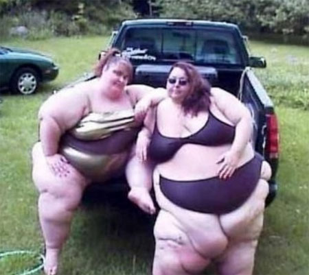 日前去巴哈马旅游时,三千人的游轮甲板上人头济济,几步间三点式的美女,肌肉型的赤膊帅哥随处可见,个个娘胎里带出的细腰大眼突胸高鼻长腿,外表俏丽,凸凹有致,都能冒充模特儿。然而,几步之遥,便是步履蹒跚,一步迈不了三公分的胖胖们。看着他们身上的三迭泉,四迭泉的肥肉滚滚(图5),真难想象他们当年年青时,也曾苗条过,潇洒过,可是在日后相处的日子里,终于找到了答案。船上的三个大餐厅,甲板上的酒巴,泳池似乎是他们的一统天下。早上开始,一盆盆自助餐,总是琳啷满目,上午晒太阳时也是啤酒,薯条,冰激淋不断,中午时分嘴巴还没个消停,到了晚间更是大显身手,牛排,龙虾,炸鱼片都能来上个双份,手指上的一点汤汁都要舔个干净,于是终于明白"钢铁就是这么炼成的,胖子就是这么吃出来的。"