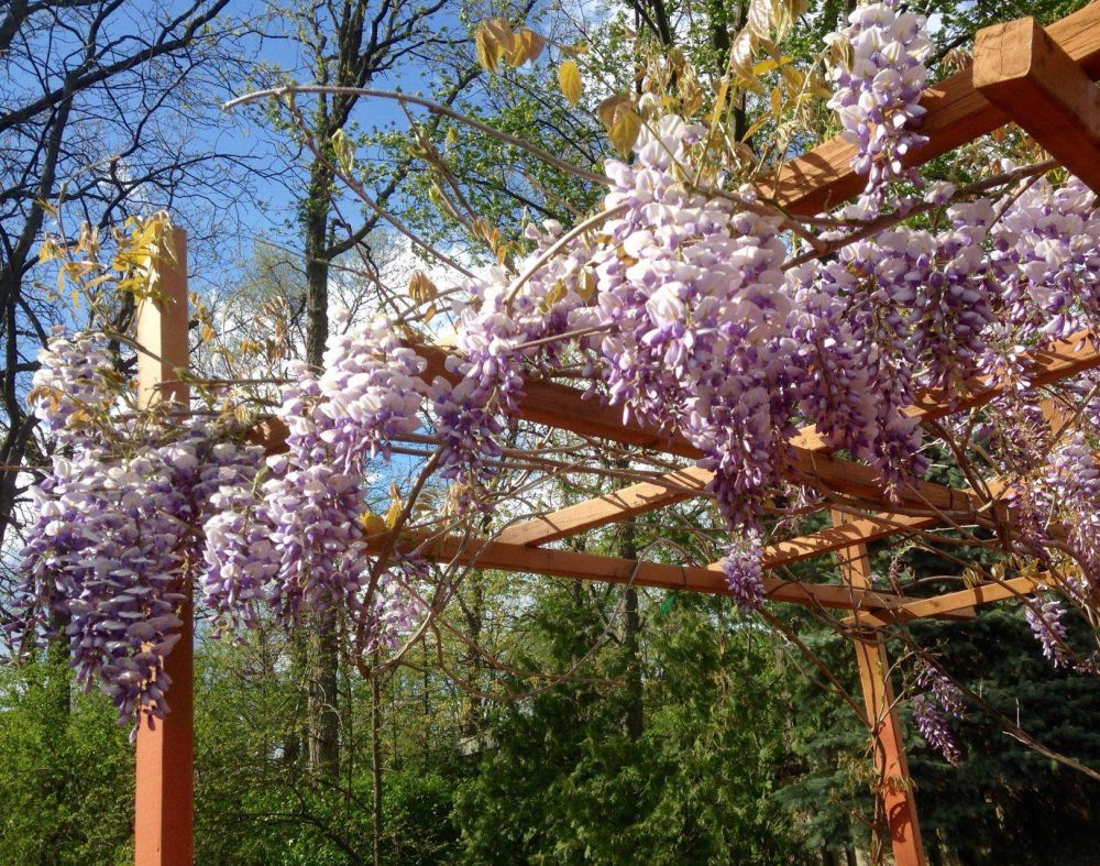 2002年7月,由纽约移植此地的紫藤,继2013年的严寒后,又一次经受了自然的严峻考验。5月中旬时,35%的枝条才抽出绿芽,2017年5月14日母亲节的满树紫花,不能再现。这似乎是在冥冥中,真有上帝在安排,那年的4月25日妻子确诊为肺癌晚期后,5月14日母亲节,紫藤没长一片绿叶,却以满树的紫花,夺目养眼的姿态,淡淡的香气,来慰汲妻子的苦痛,安抚她多年的辛劳,让我们在牡丹,紫藤的花丛中,把坏消息告诉纽约回来的女儿。 2018年,2019年5月的紫藤,再也没有以那满树的紫花,向春天致敬,或许2018年5月16日至6月20日,我们在上海,没见到紫藤花,而2019年5月,也和今年一样,先见绿叶,未曾见花。