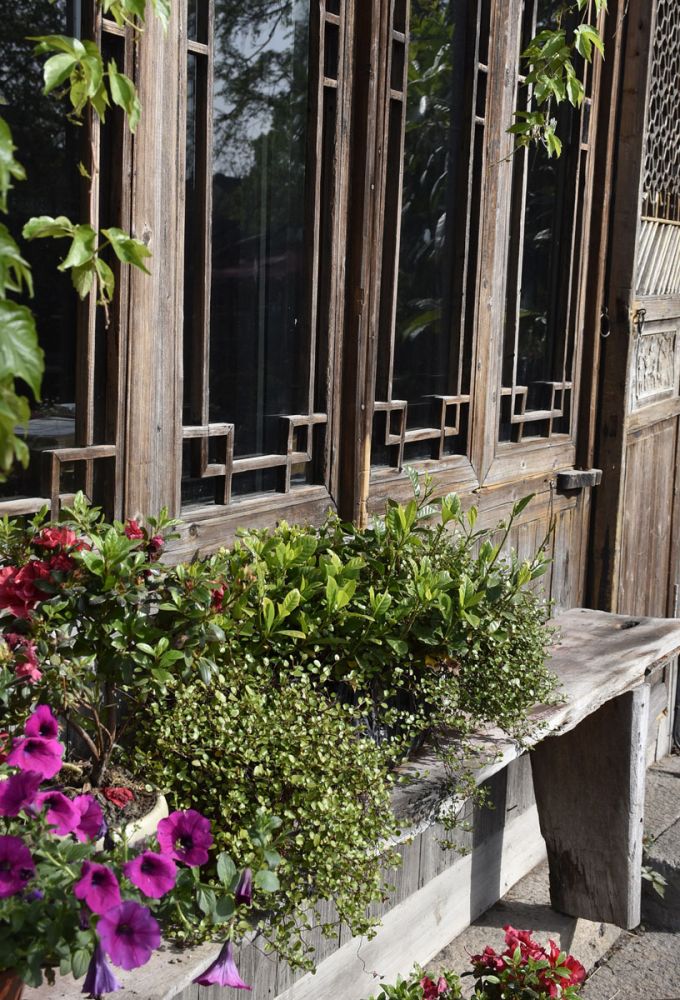 回到入住的民宿的时候,把已醒的女儿叫出来在民宿的对岸码头处为我和父母拍照。我们站在餐厅的窗前和房间的阳台上、还有来远桥头让她拍。母亲很喜欢窗口挂得水红色矮牵牛,我们站在它的边上照了合影。现在想起来,那是今年里最为特殊和美好的时光。因为,一周后,我和女儿就收拾行李乘很长时间的飞机又回到瑞士了。而他们,依旧继续他们在南昌相互作伴的日常生活,日复一日地忙碌在厨房客厅和花园之间。我们这个春天,只在一起度过了一个多星期的时间。