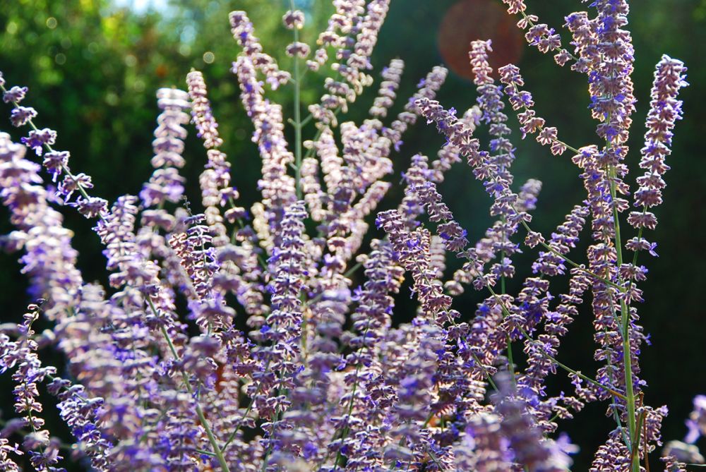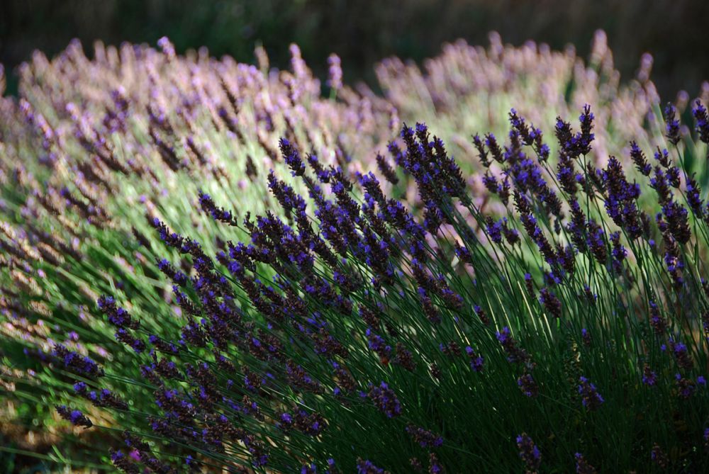 有一天早上马克骑车路过附近一片巨大的薰衣草田,回来后就约了第二天的清晨返回那里去看。我们特地早早起来,没有洗漱就开车过去看。那周围渺无人烟。阳光乍现之下的大片薰衣草田,简直无以伦比地醉人和难忘,连绵整齐的纯粹的紫,在金色的光线里如同处子。我想,每一个热爱浪漫的人,都要在她的生命里经历一次这样惊鸿一瞥的邂逅,才可以没有遗憾。