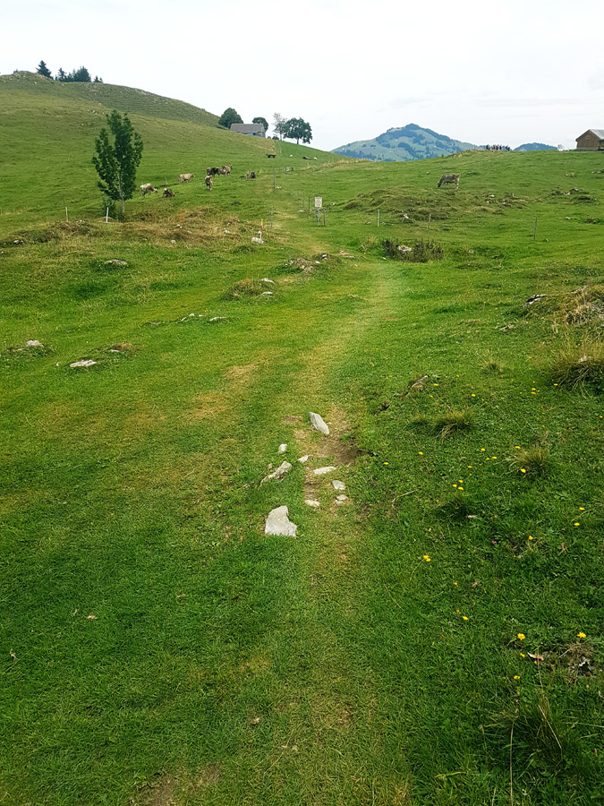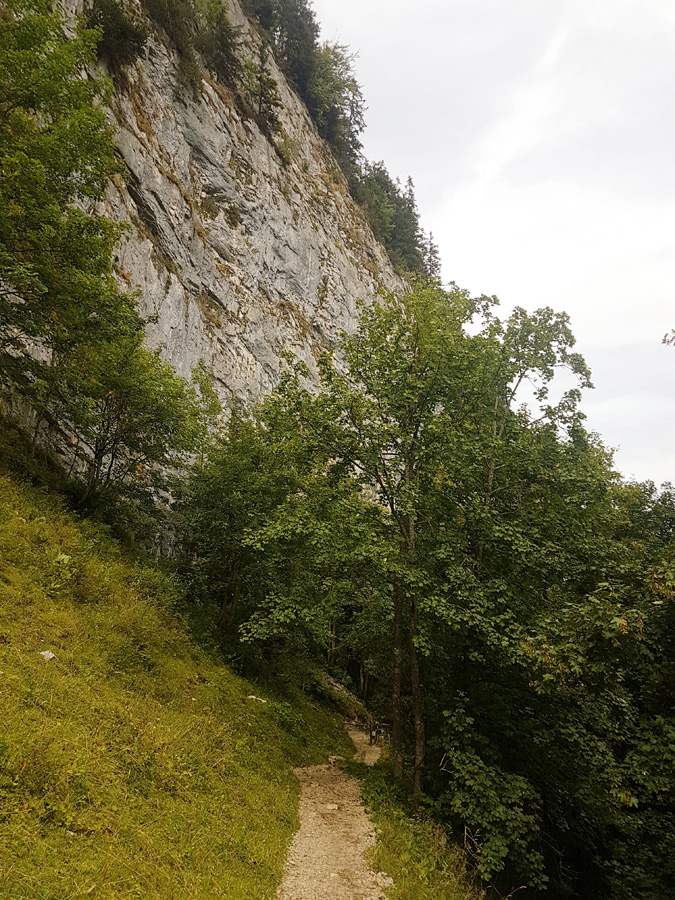 付过帐后,厨师特地赠送我一杯咖啡,喝过后清醒了起身上路,徒步两小时到山下Wasserauen的缆车站。路上风景,有山崖,树林,起伏的丘林,也有农舍和牛羊,典型的阿尔卑斯山常态,就不一一细数。
