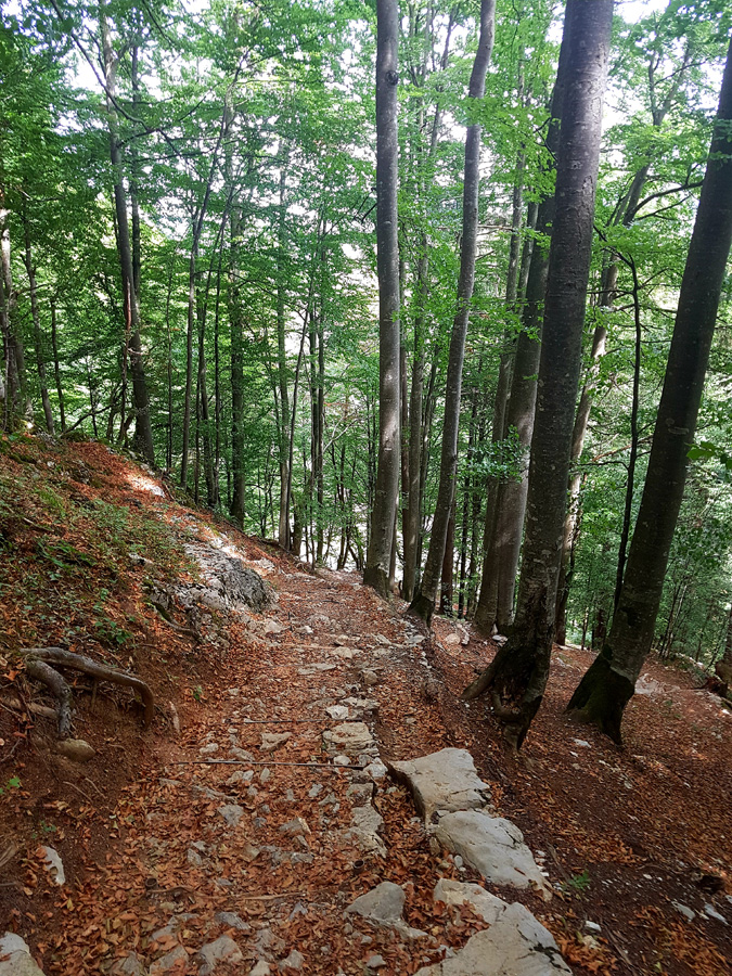 先到达的是洞穴教堂。有设计好的木道穿过三个洞穴,两边是圈起的旧址,历史似乎可以追溯到四万年前的欧洲旧石器时代中期,曾经有猎人栖息的痕迹。在那之前,也有过大量的岩洞熊居住的痕迹。十七世纪有牧师在下洞穴中建立了一座小教堂,并在上洞穴建立了一座修道院。曾经有隐士居住在修道院中,并为参观教堂的朝圣者提供食物和住宿。 最后一位隐士于1851年去世。这座修道院的旧址上现在是一个小小的木制的博物馆。奇怪的是,我在里面滞留参观之时,突然无故被一种难过的情绪笼罩,竟然落下泪来。离开之后又烟消云散。