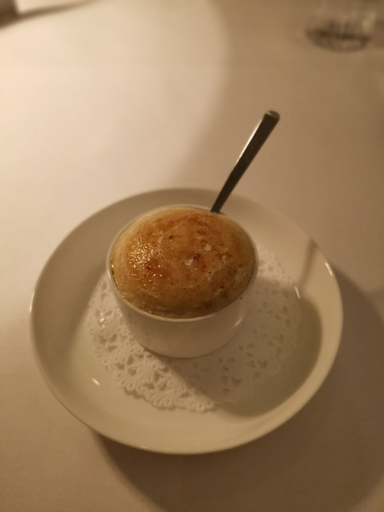 Ravioli von geschmorter Kalbshaxe mit altem Sbrinz an Nussbutter Schaum und Périgord Trüffel