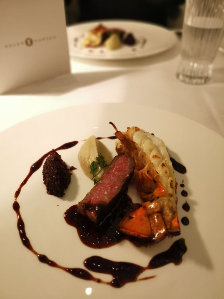 Adler餐馆的大厨真是个会折腾、有心思的,首先选材就下了很多工夫,采集的都是世界各地最好的原料,烹饪亦是他亲自掌勺。围绕龙虾松露主题的美味佳肴一道道有条不紊被呈现上来,有专门的女服务员介绍每一道菜所用的食材和出处,然后是我们虔诚和郑重的对食物的品尝。我那晚特地带了新买的Leica相机,和女儿轮流拍摄每一道食物,作为摄影爱好者讨论出片的颜色、空间和光影效果。