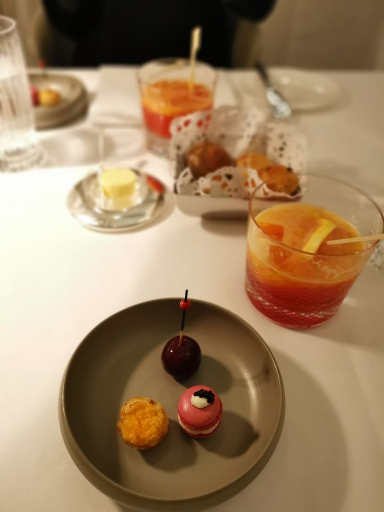 餐馆的环境也是适宜两人安静而不被打扰地用餐的。餐桌放得很散,照明柔和,客人说话声节制,相互不打扰。室内风格素净雅致,有极致之美。无论是餐桌上配的低调花艺、厚重的水晶烛台,还有房间一端灰色的混泥土墙以及现代的挂画,都很符合我的喜好。那天女儿坐在我的对面,小口品着加了桔汁的Martini鸡尾酒,笑面如花,特别开心。她说,妈妈,我觉得这样的夜晚,你和我,这个优美的餐馆,又特别、又浪漫,简直是完美。