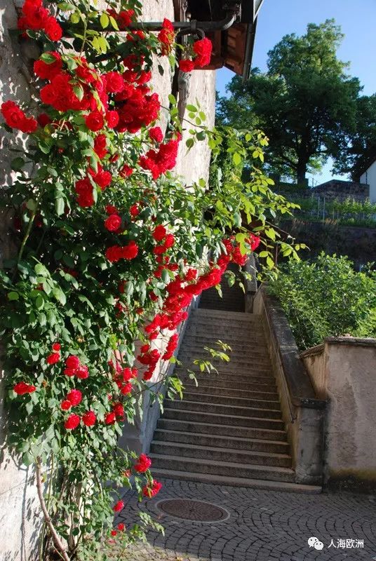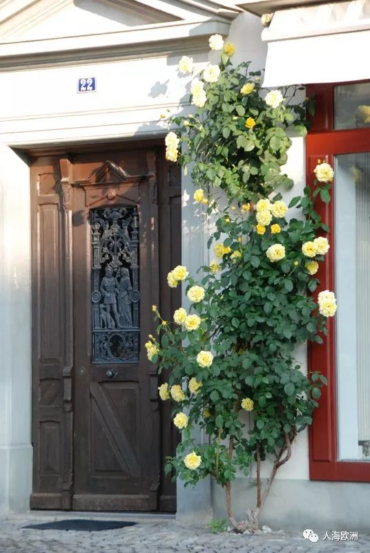 因为是周六又才七点不到,整个城寂寥到只有两三个早起遛狗或晨跑的人。太阳斜斜地升起还不够高,照不进弯弯曲曲的街道深处。空气如此清凉,我穿了那件Burberry经典的风衣式米灰色厚布连衣裙,光脚蹬着一双粗跟的米色Loafer,还是觉得有些冷。我的鞋跟敲在石砖的路面上,听起来特别响。Hintergasse路上的玫瑰果然都尽情地开了,而且都已开到荼蘼,又繁盛又热闹,满城的玫瑰氛围,不枉我如此这般惦记。尤其是有一处老木房子底层的街廊外面,简直绝美。还有同条街道尽头的拐角处那沿着墙角爬得高高的粉色玫瑰藤,就连落在石砖路面上的一地花瓣都让我几乎喘不过气来。