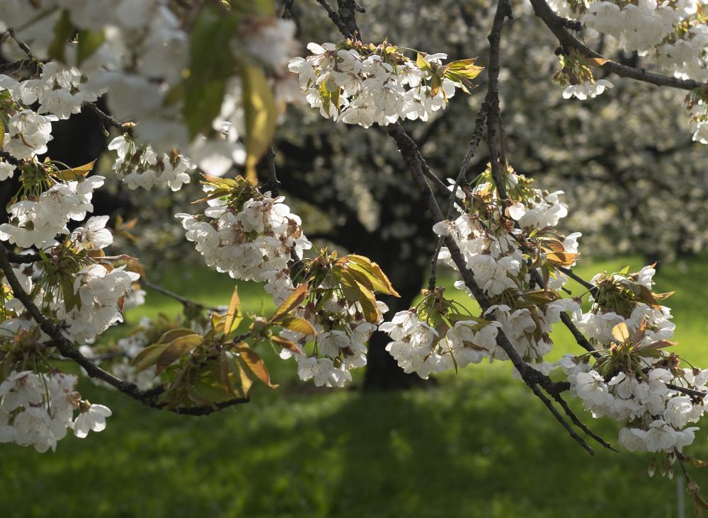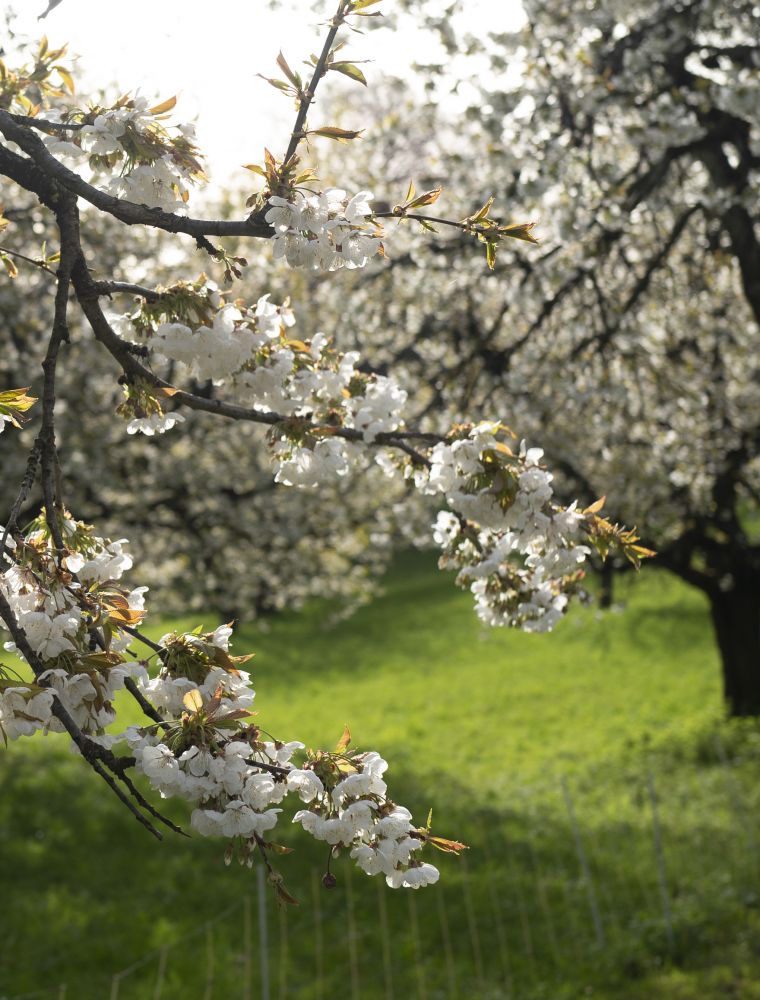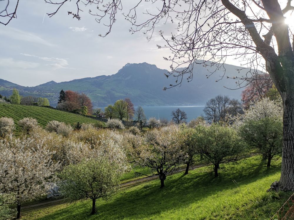 一周前的周末我专门赶去Aargau州的Jurapark看樱花,那天气温急降,一夜之间回到冬天,阴雨绵绵。樱花很大部分已经开到衰败,许多新叶长成,夹杂在花间,成片的樱林已经没有纯粹的粉白颜色,还是有些遗憾的。樱花的花期特别短,错过也只能等下一年,不想在Spiez会邂逅这样一大片开得正好的樱花林,心有感念。