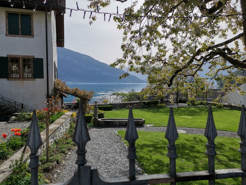 从火车站走出来,就可以俯瞰沿湖城堡一带的风景。这是一个特别典型的瑞士湖边小镇的模样。可惜那天古堡外墙被脚手架围绕,可能正好赶上翻修。一路按照徒步的路标指引,穿过居民区的小巷子,来到古堡的跟前。