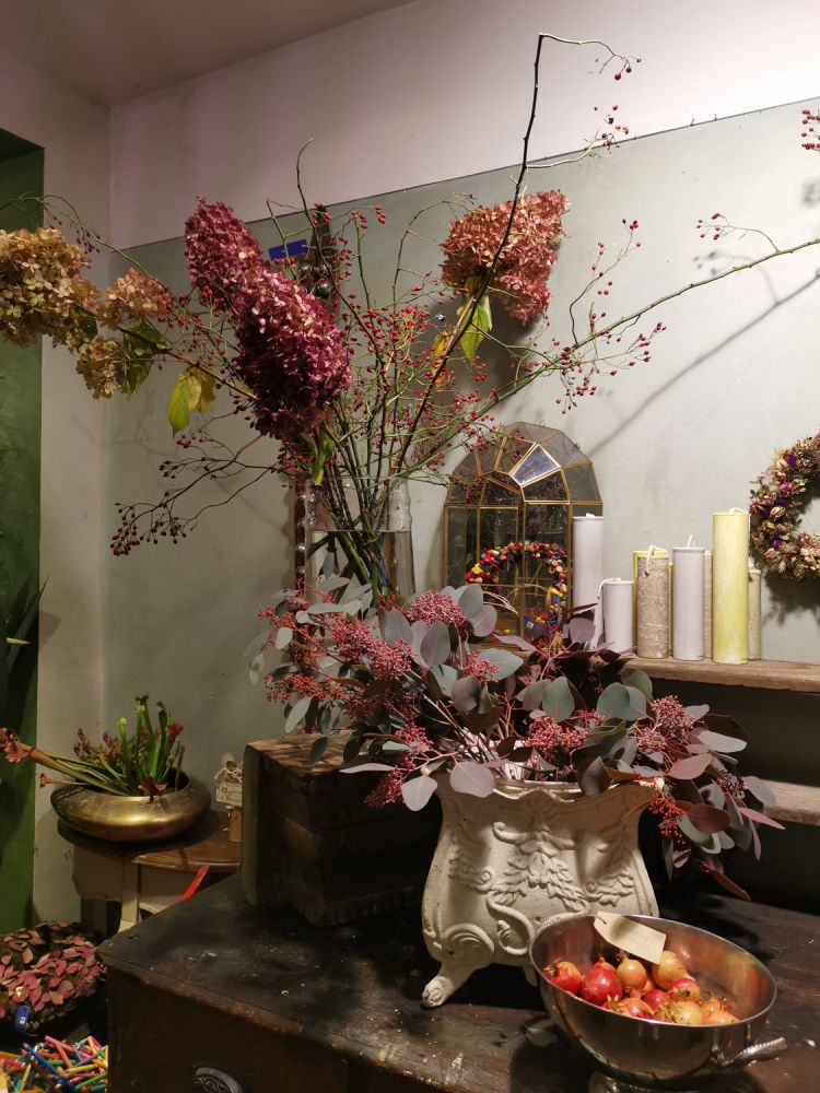 Talstrasse那家鲜花咖啡馆。咖啡馆停业了,让我很失望。花店把空间都占了。今年的圣诞花展之色彩浓重,亦不是我能消受得起的。