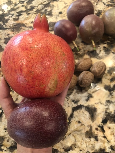 削柿皮做柿餅,剝石榴打果汁,加兩顆百香果更好喝!