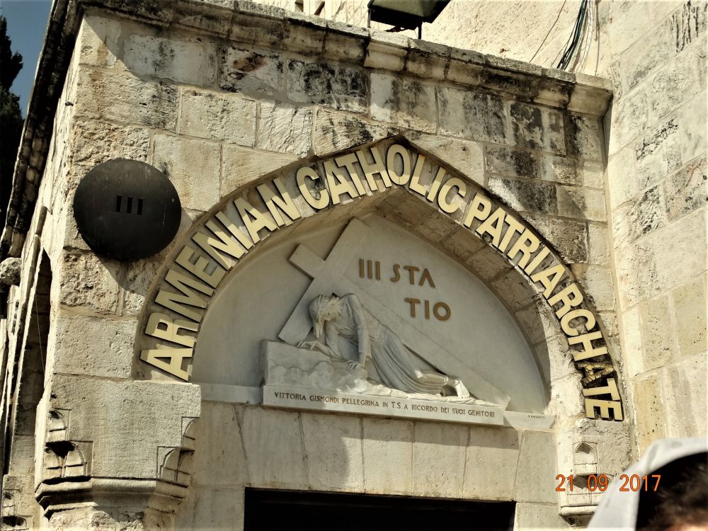 第三站是耶稣第一次因为十字架沉重而跌倒的地方。现在是建于19世纪的天主教小教堂,属于波兰的亚美尼亚教会。教堂门楣上的雕塑,展示了耶稣跌倒的情景。