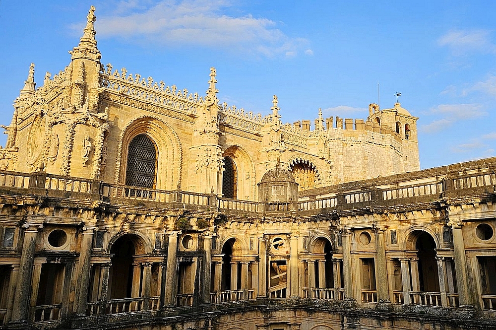 今天开车最多,一直向北到托马尔Tomar。到托马尔是因为这里有个城堡修道院(Convento de Cristo) 兼做城堡和教堂。圣殿骑士团于 12 世纪在此建立城堡,作为抵抗摩尔人的要塞,被摩尔人包围并一度攻占了南部。之后这个城堡成为基督教王国边境的要塞,面对摩尔人的入侵,保卫了基督教王国。后来在内部建了教堂。著名的航海家、大发现运动的先驱亨利王子曾是这里的统治者,他给修道院加入了航海元素。修道院票价15欧元,65岁减半。