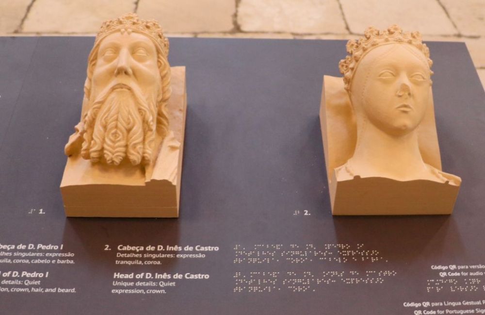 修道院博物馆展示的佩德罗和伊内斯的头像复制品。伊内斯头戴后冠,表示她的王后身份。