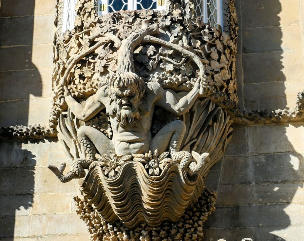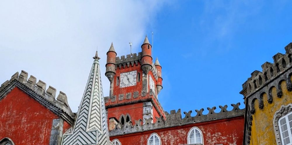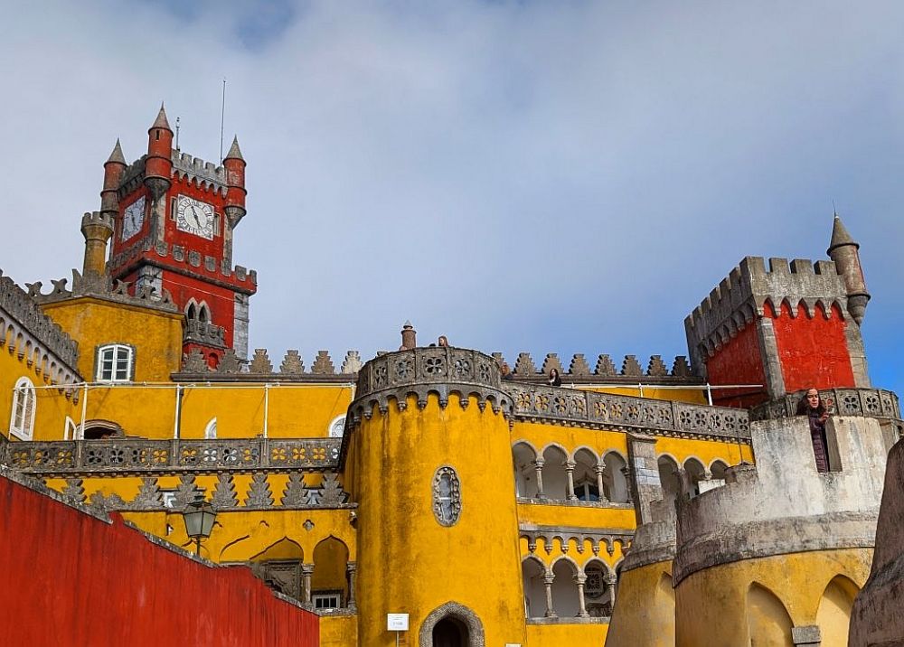 我们先在佩纳宫下车,佩纳宫被评选为葡萄牙七大奇迹之一(巴塔利亚修道院和阿尔科巴萨修道院也在其中)。佩纳宫外表看像是一个童话城堡,造型积木化,色彩艳丽。建筑师是德国人,借鉴了德式城堡的元素,并掺杂了哥德式、文艺复兴式、摩尔式、曼努埃尔式各种风格。其效果是一个大杂烩,不古不今。它属于葡萄牙王家离宫,但内部装饰十分寒酸,远不及英法皇室的富丽堂皇。