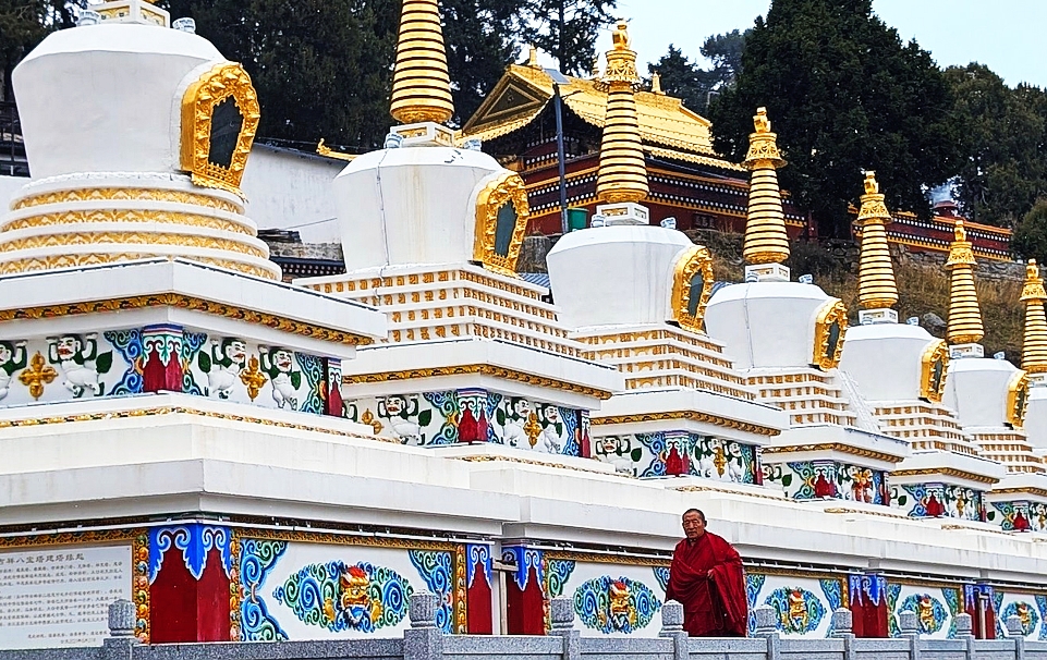路过郎木寺,没有进入。一个穿着深红袈裟的老喇嘛正在转经。