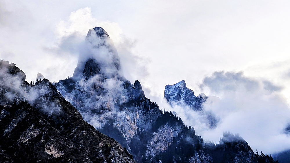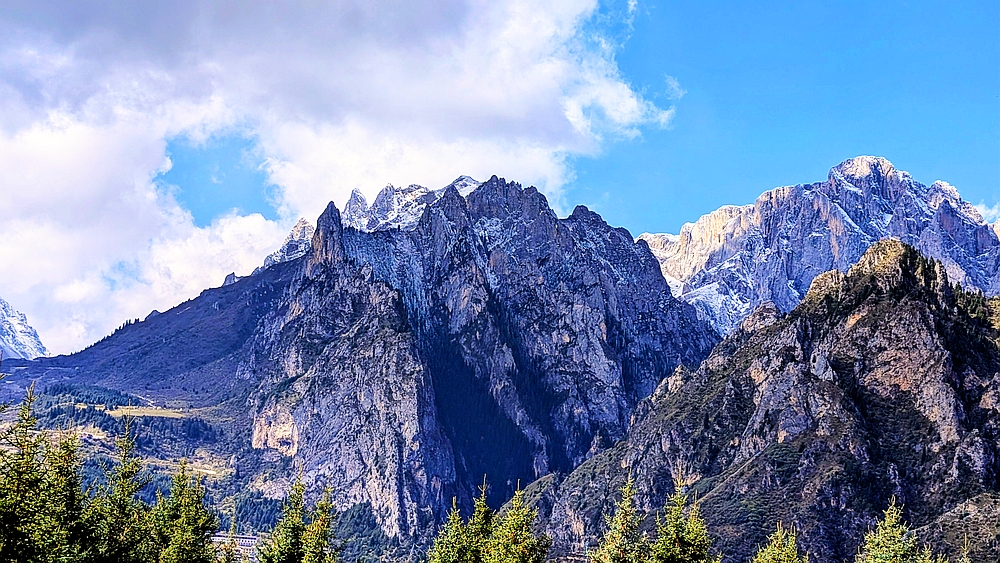 这时西边的云上来了,明天天气要变坏。我们很幸运,在扎尕那赶上了这几天唯一的一个晴天窗口。还看到了扎尕那的日照金山。