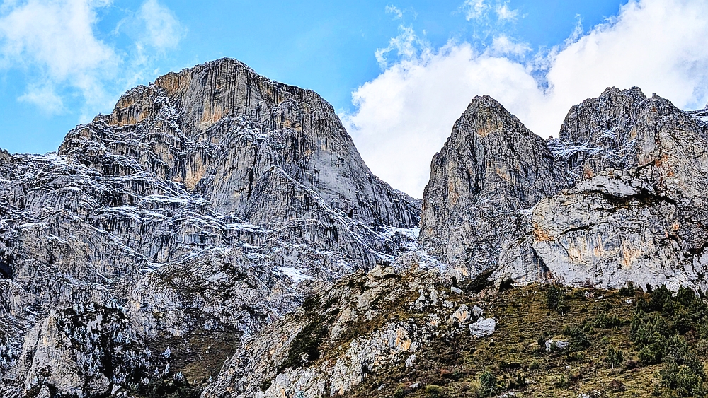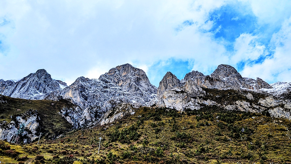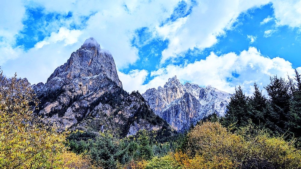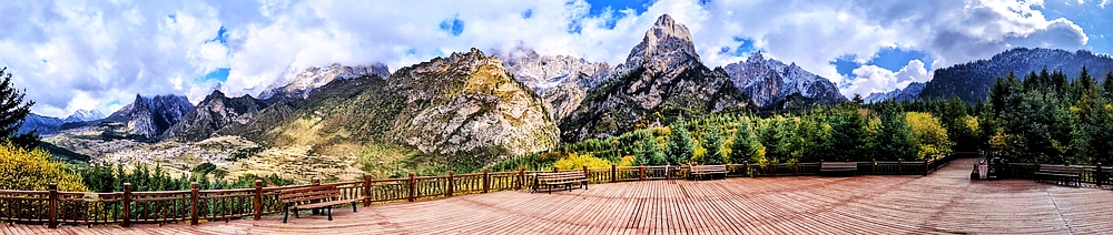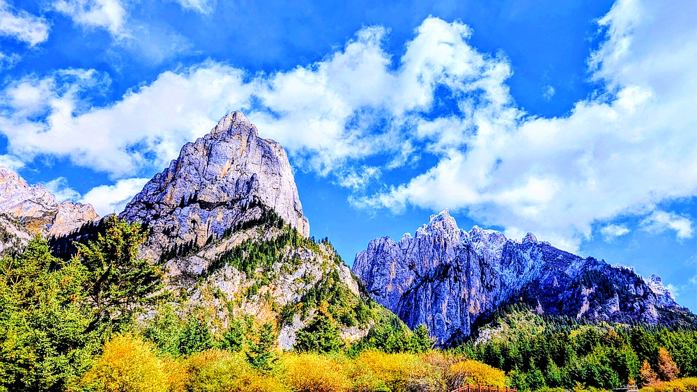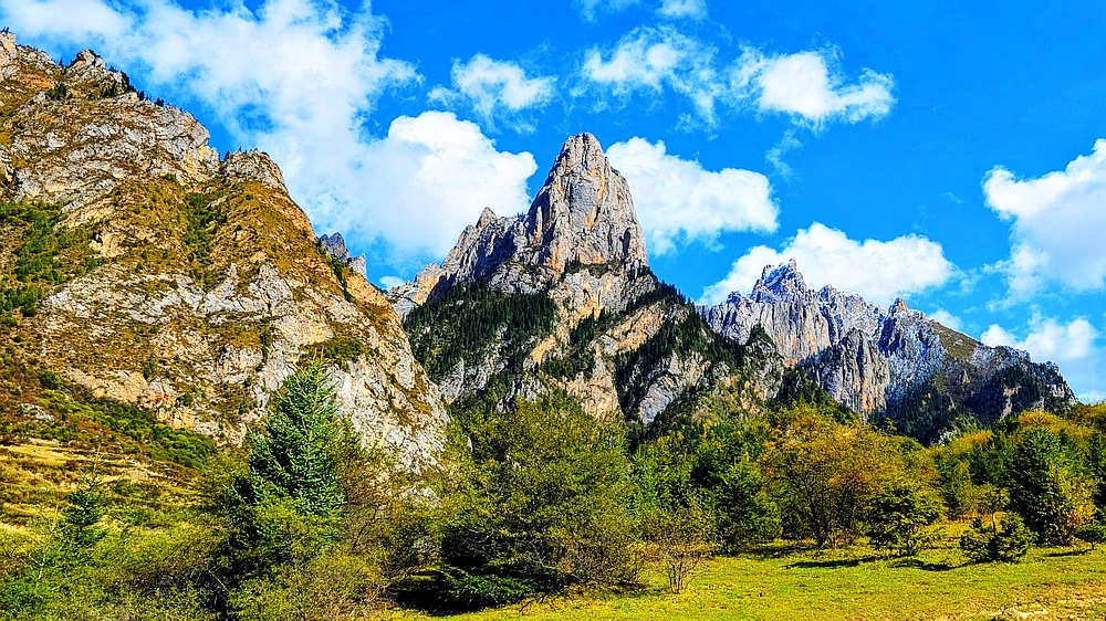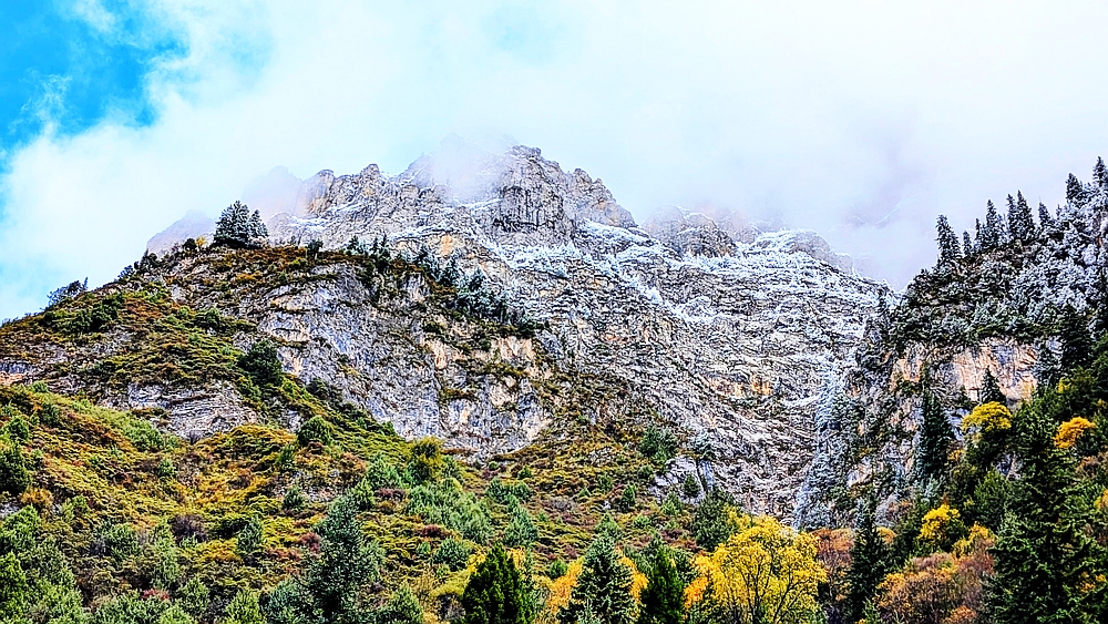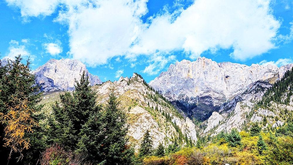 从一线天坐返程车到老虎嘴,再走路到仙女滩。仙女滩座落在半山,是一个观景平台。可以360度观赏扎尕那的山景。这时天晴雾散,扎尕那山景清晰可见。这里是看扎尕那奇山峻岭的最佳地点。