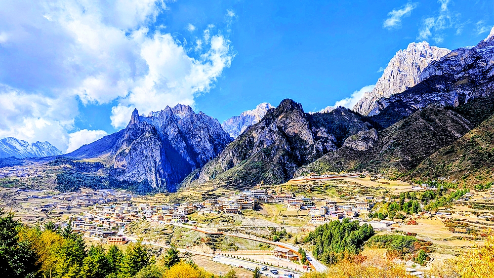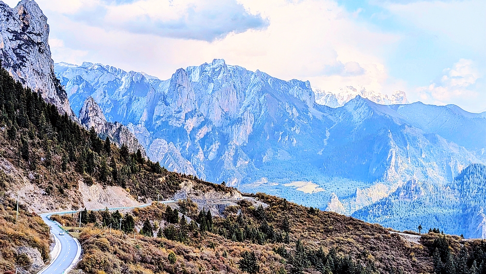 从仙女滩回到游客中心,打电话给赵师傅,接我们去国道上的几个观景台。第一个观景台是业日观景台。这个观景台没有标志,大约位置在业日村,对着山谷的一个平台上。第二个观景台是日出观景台,这个观景台对着东方是看日出的地方。第三个观景台是达日观景台,这个观景台比较大。再往北开,还有个达西观景台。本来还想再往北去,路上有个夏吾那观景台。出了北门,是1号观景台,再往北,就是著名的洛克之路。因为这一段路经过了两段炮弹坑路,司机不太愿意去,就放弃了。这也是为什么我愿意自己租车,想去哪儿去哪儿。这几个观景台都是看扎尕那的奇峰峻岭的。