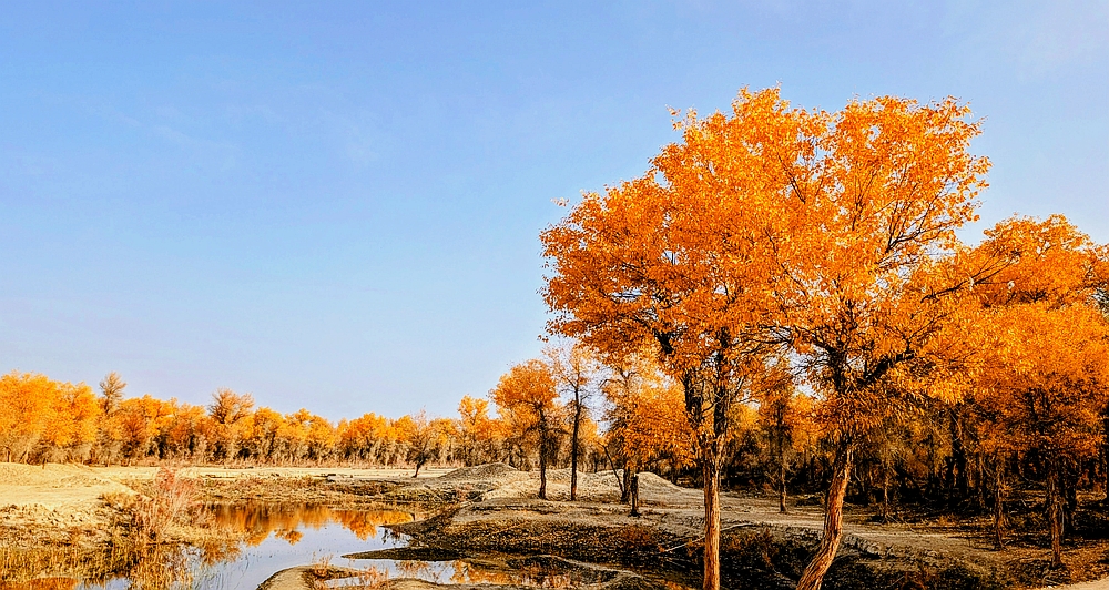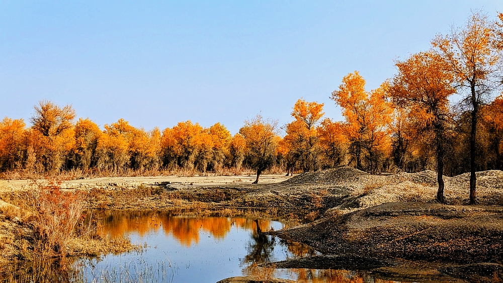 139胡杨秘境公路是南疆沙雅县内一条全长139公里,穿行于470万亩野生胡杨林的公路。这条公路沿塔里木河南岸延伸,经过三个湖,能看到湖边的胡杨倒影成趣。路旁还有沙丘。