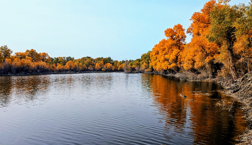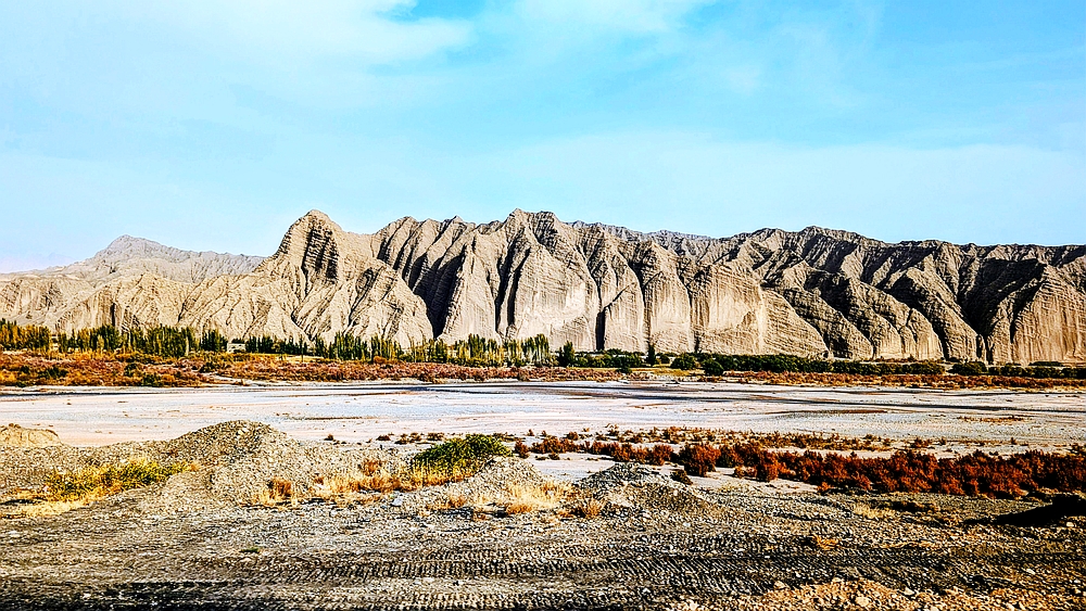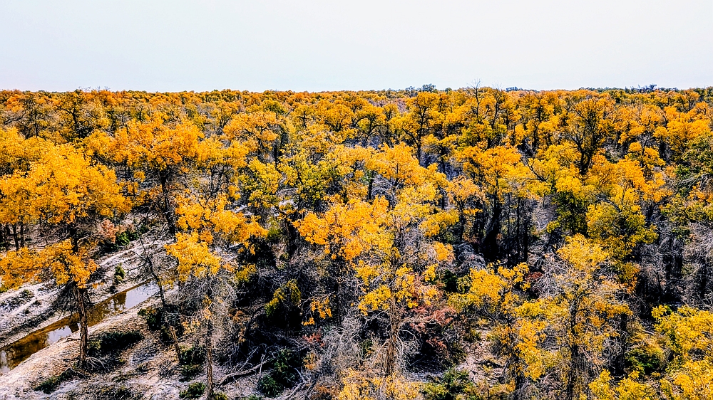 这条公路是乡道,很多地方只能单向行驶,如果对面来车,需要靠边避让。这里和泽普胡杨林景区的区别是,更多的野趣,没有一点儿的人工雕饰。