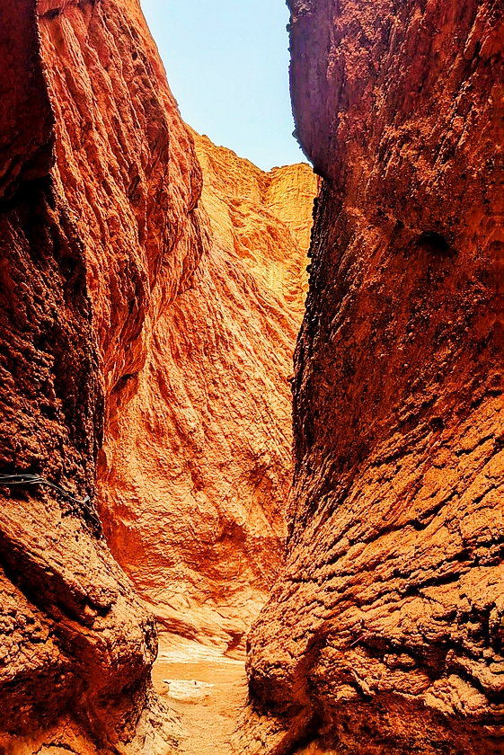 天山神秘大峡谷,纵深长约5.5公里,最窄处仅容一人。为红褐色岩石经风雕雨刻而成,峡谷曲径通幽,别有洞天,山体千姿百态。距峡谷700米处另有一峡谷,叫克孜利亚大峡谷。被民营开发。允许自驾车进入。而神秘大峡谷不能自驾,只允许乘景区电瓶车或徒步进入。电瓶车只走一小段,大部分路需要游客自己走。峡谷内坡度不大,很容易走。边玩边走,并不觉得累。