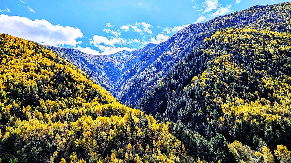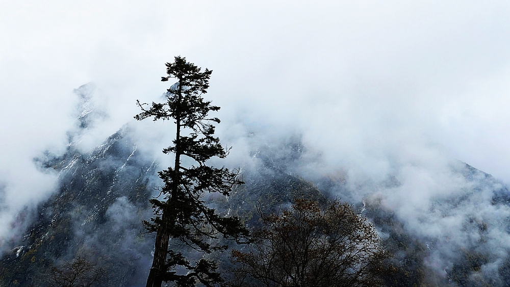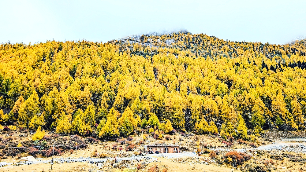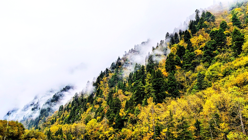 山区天变的很快,早晨起来看天又阴了,大雾把山都遮住了。吃完民宿丰盛的早饭,我们沿着理小路(理县到小金)开往四姑娘山,理小路被称为川西的独库公路,沿路有雪山彩林等景色。
