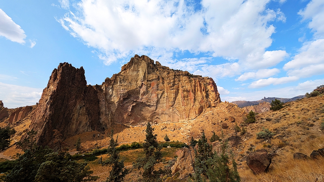 俄勒冈真是个岗,到处是山路。到达Smith Rock州立公园时已经1点半了。这个公园没有门票,只有停车费,州内居民10元,外州的12元,自己在机器上交钱。