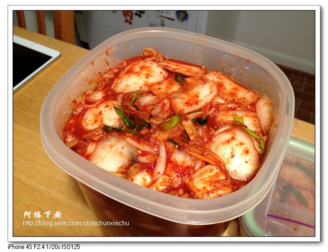 11.做好的新鲜泡菜马上就可以吃。在室温下放一晚发酵后再放冰箱,味道更好。