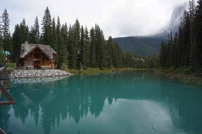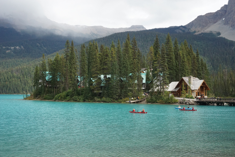 Comparing to Lake Louise, and Moraine Lake, there was so little people at Emerald Lake. We even saw a mother moose and a baby moose up close during our hike. They were going to cross the trail we were walking on. So we walked past it and turned back to look. We were afraid the mother may attack us if we stayed too close, so we walked 10-20 yards away. Both of the moose crossed the trail quickly and disappeared into the woods.