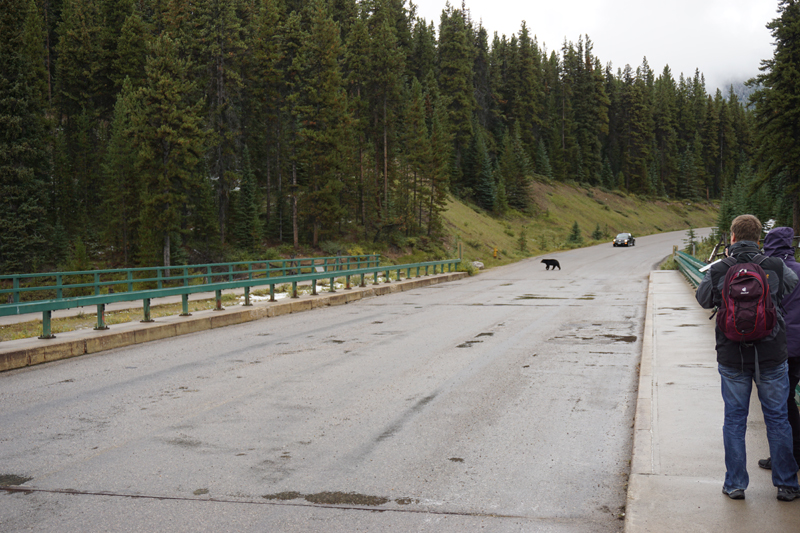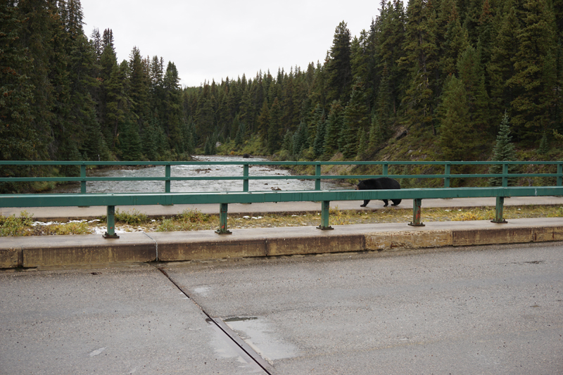 Today was another cold, rainy and cloudy day. We drove to Maligne Lake, stopped at Maligne Canyon first. No good photos today, but we did have an amazing bear encounter.
