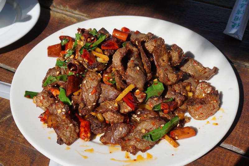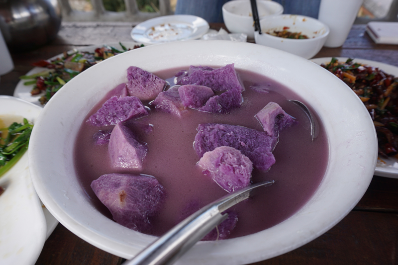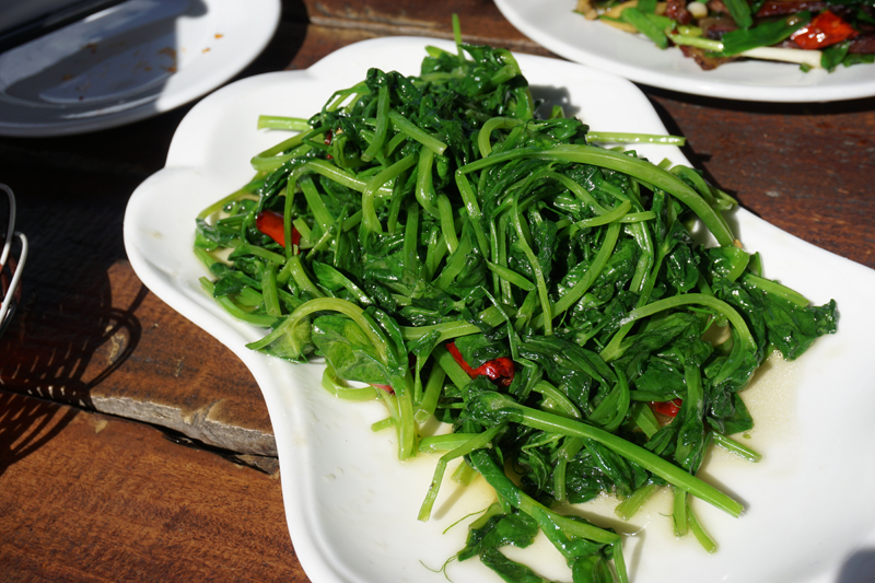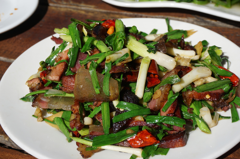 We ate lunch at a Nong2 Jia1 Le4, which means "have fun in farmers' home". There are no menus in rural Yunnan restaurants. You order in the kitchen by looking at what ingredients they have, and tell them what you want to eat. Since there is no menu, there is no price either. You pay whatever they ask after the meal. For the most part, the bills had been very reasonable. There were a couple of surprises but we paid anyway.
