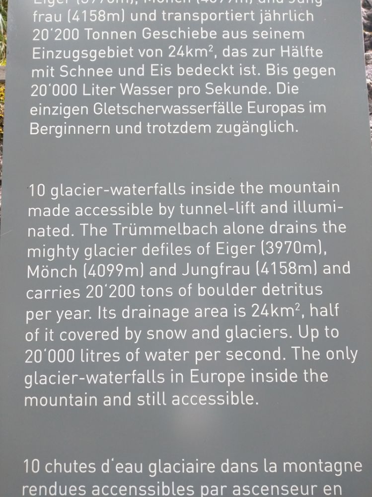 3. Took a local bus to see the Trümmelbach Falls, which is a giant waterfall inside a mountain (11 CHF pp, cash only, no Swiss Travel Pass discount). It is really cool, totally worth it.