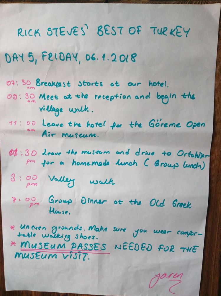 1. Rick Steves' tour day 5 schedule.