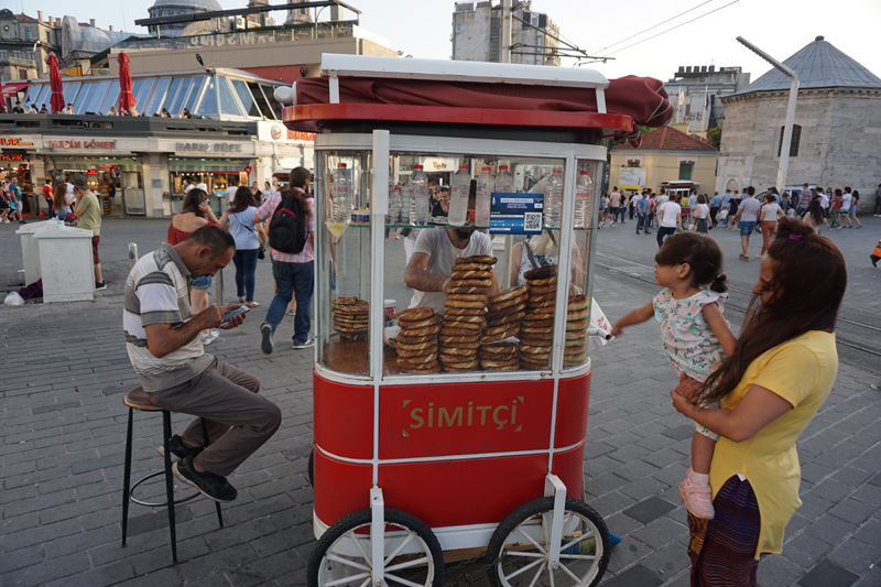 11. Simit, a popular circular bread in Istanbul, typically encrusted with sesame seeds. It is really good, and it was only 1.5 TL (33 cents) when we were there.