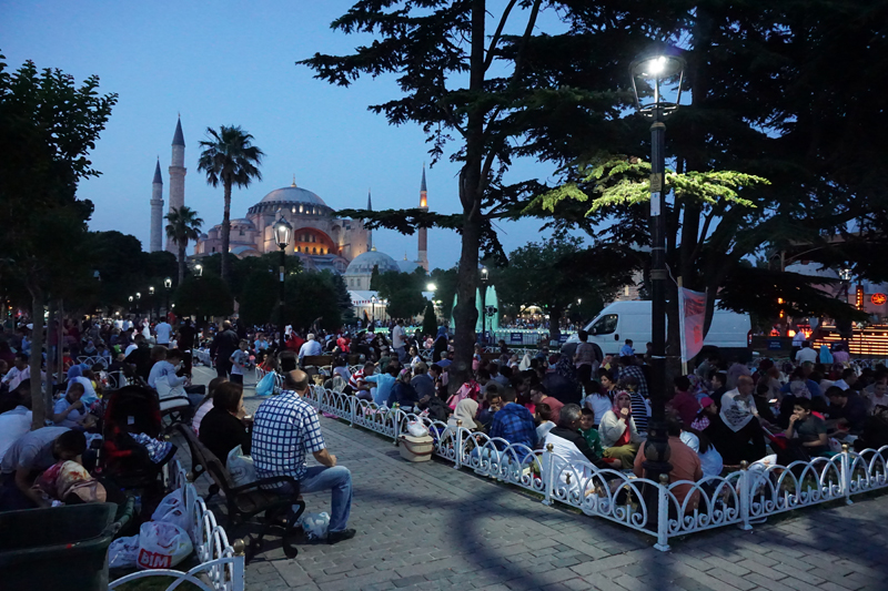 15. Families breaking fast together in front of Hagia Sophia.