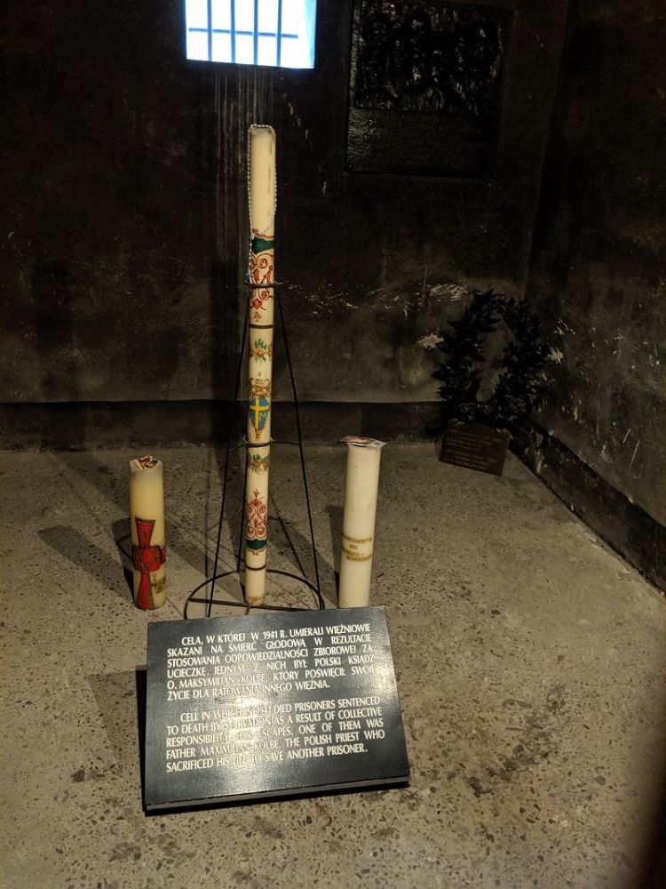 9. The cell where Father Maximilian Kolbe volunteered to die in place of a stranger in Auschwitz main camp.