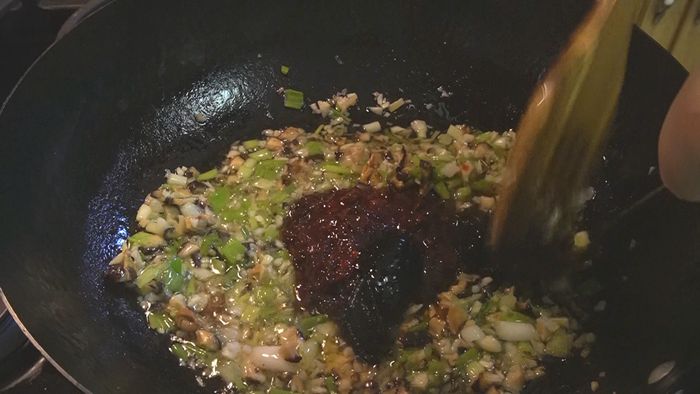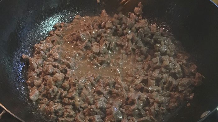 然后再炒香料和酱料,最后跟炒过的牛肉混合炒