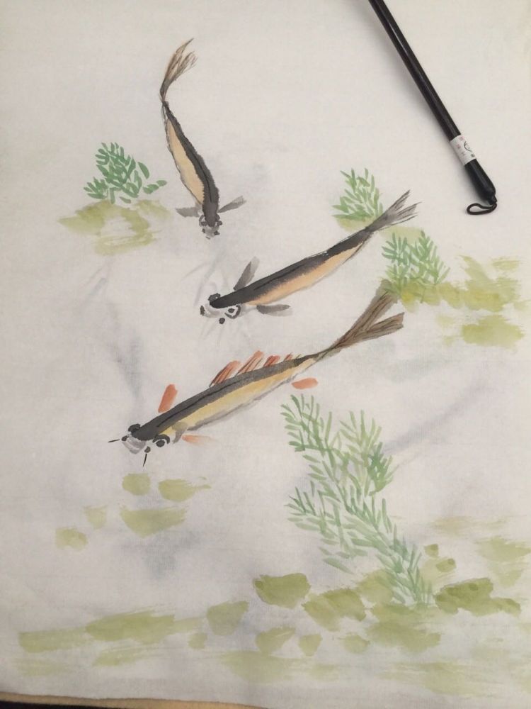 濯尾精灵啄画笔,飘魂荇藻系瑶台。