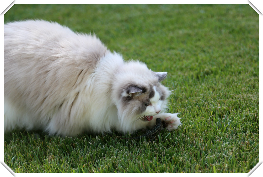 晶晶最喜欢在草地上戏蛇。