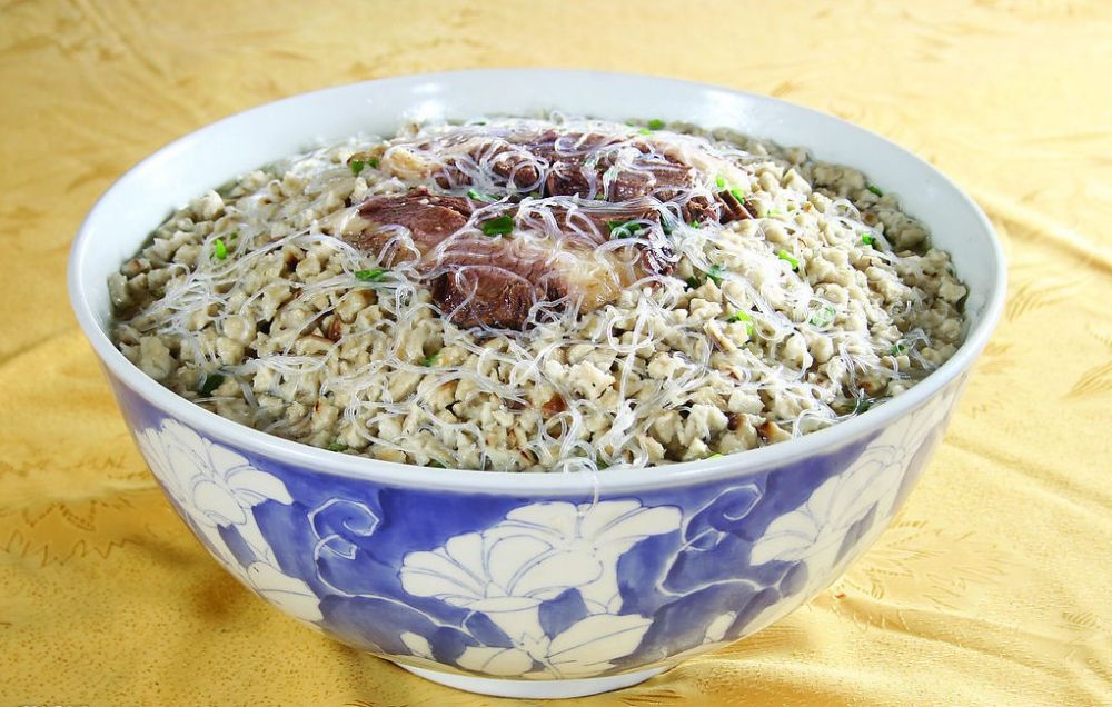 陕西第一名吃:羊肉泡馍。看上去很漂亮的。但是,内行的人一看,吃这个羊肉泡的人就是外行,因为,馍是切出来的。老陕不吃这种羊肉泡。
