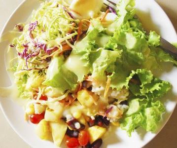 在广大人民群众的强烈要求下,每人一小盘蔬菜沙拉。(蔬菜挺贵的,真舍不得多给他们吃)