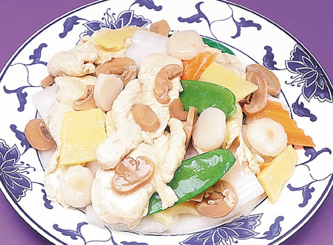 嗨!原来就是蘑菇鸡片呀?广东话叫做Moo Goo Gai Pan 或者是 Mugu Gaipan.