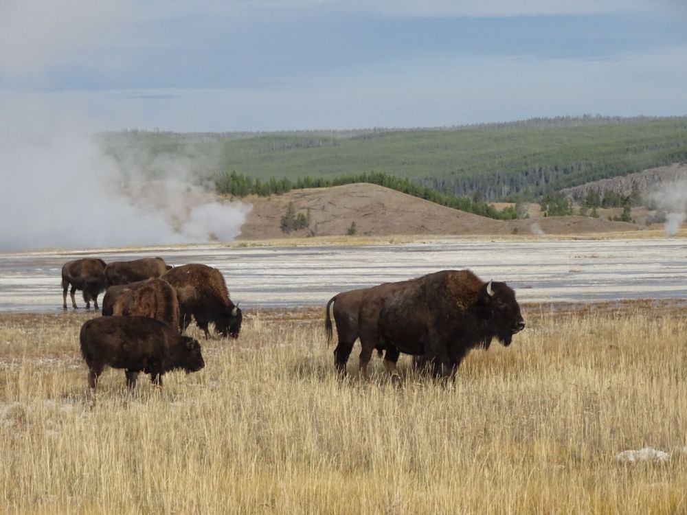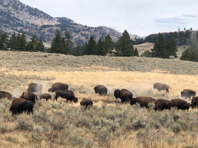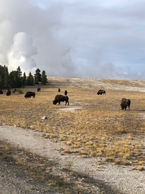 早晨用完了膳就迎着太阳出发了。今天进黄石公园,终于有机会交进门费了: $35, 心里舒服了很多。