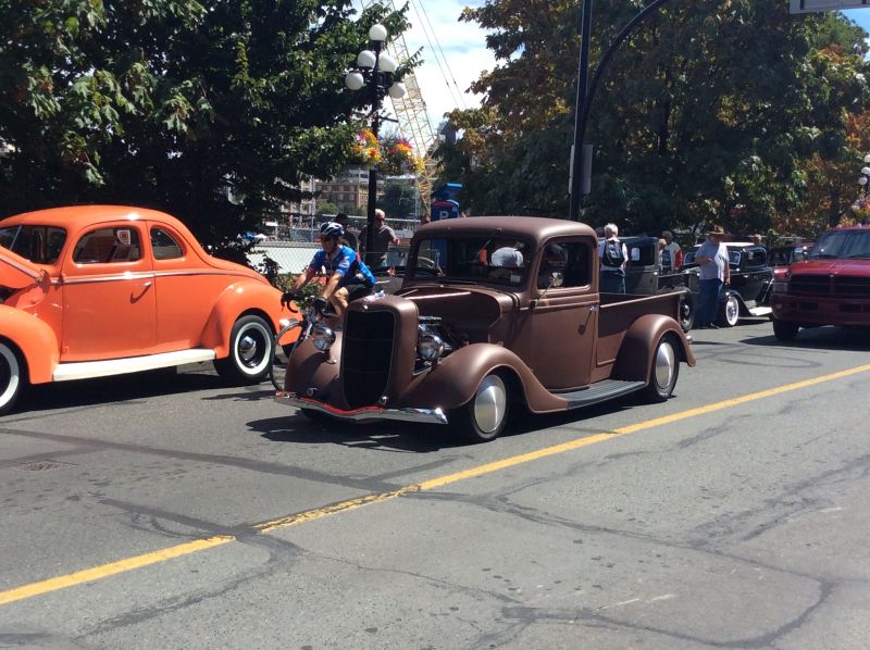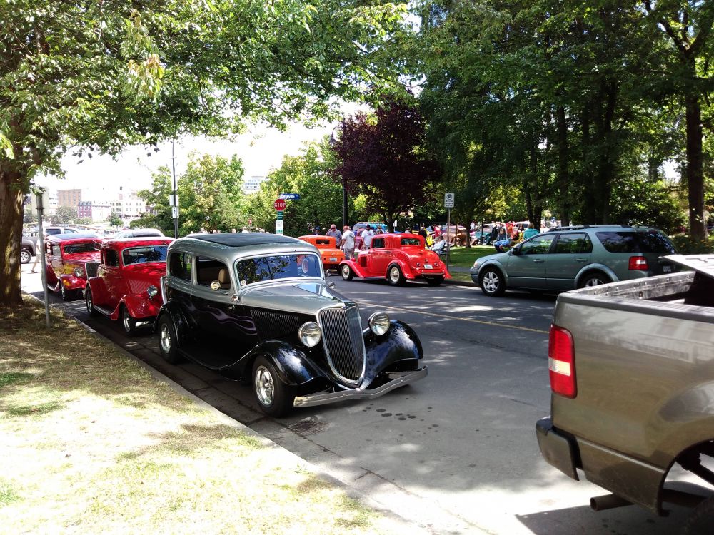 今天真是赶巧了,我们到维多利亚Inner Harbor去玩,看到整个街上都是五颜六色漂亮的古董车,街上坐满了看热闹的人。原来是三年一次的Deuce Days在维多利亚大聚会,就是 西北1932年古董车俱乐部大聚会,这次光注册的就有1100辆,光是加州就来了120辆,租了一个渡船过来,也有从棕榈泉来的(最后一张)。明天更热闹,要封路让所有人可以参观。
