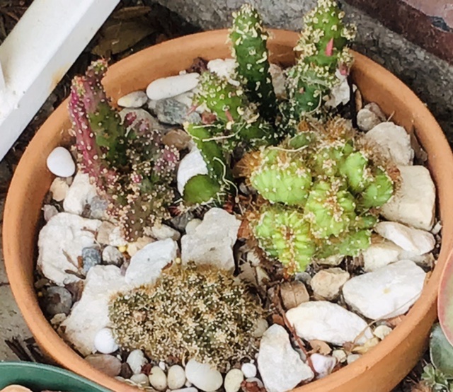再晒晒我收集的仙人掌、仙人柱、仙人球的品种。我收集cactus 是因为它们的花太好看了。希望它们快快长大开花。